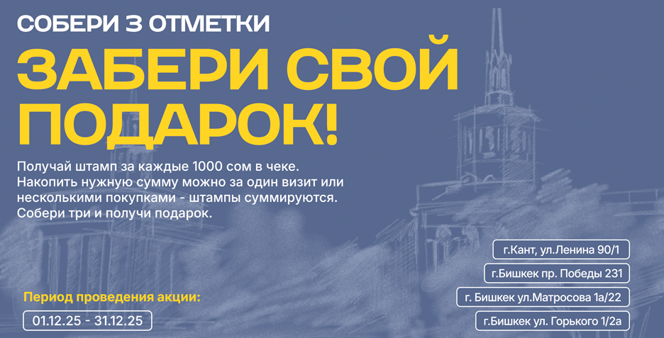 Совершите 3 покупки, каждая на сумму от 1000 сом.